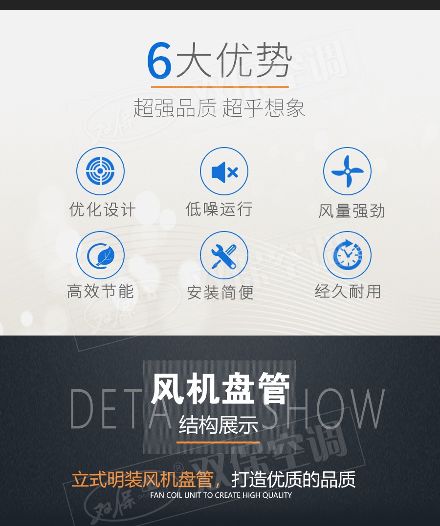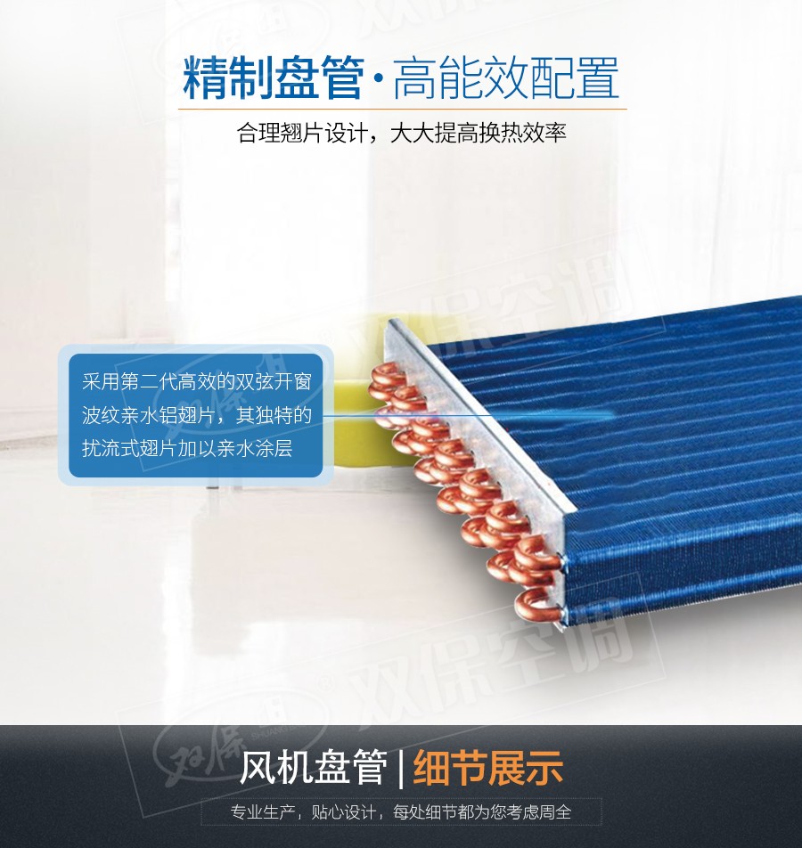 江蘇雙保空調有限公司—立式明裝風機盤管是中央空調理想的末端產品,其工作原理是機組內不斷的再循環所在房間或室外的空氣,使空氣通過冷水(熱水)盤管后被冷卻(加熱),以保持房間溫度的恒定。外形美觀,與新風機組配套后廣泛應用于賓館、醫院、辦公用房、高級會議廳、展覽廳等低噪聲場所。